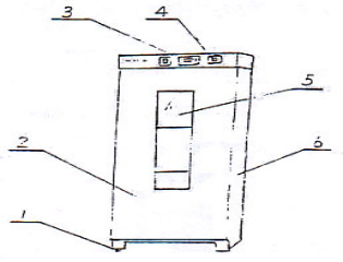 4、電源開關 5、玻璃觀察窗 6、箱體